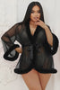 Black Sheer Faux Fur Trim Robe - Sexy Lingerie Robe for Women, Boudoir Kimono with Belt