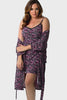 Floral print mid-thigh length robe, front waist tie and matching chemise with lace trim and adjustable straps. 94% Polyester, 6% Spandex.