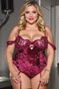 Plus Size Burgundy Crushed Velvet Teddy